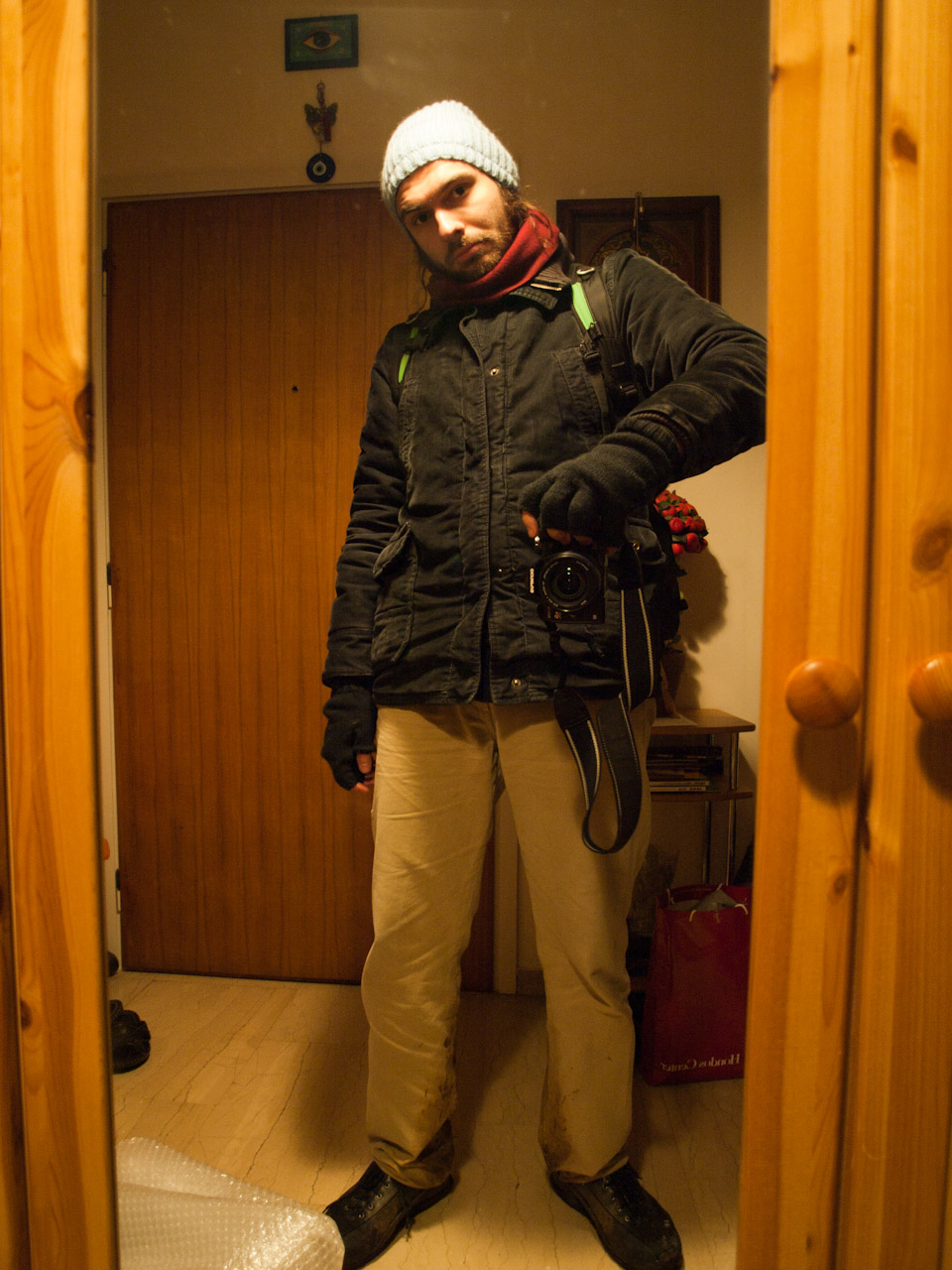 Επέστρεψα από τον κανονικό δρόμο και χώθηκα στο πρώτο λεωφορείο που βρήκα, το οποίο ήταν τσάμπα και πήγαινε γραμμή στον Ευαγγελισμό! Με ένα πλατύ χαμόγελο επέστρεψα σπίτι και δεν μπορούσα να αντισταθώ στον πειρασμό να με τραβήξω μερικές φωτογραφιές με το γουίντερ λουκ.